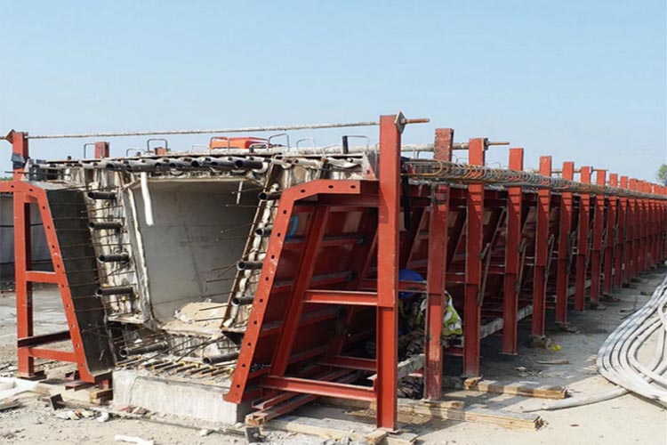 3、安裝底模時應在底模上準確標出梁體的中軸線,并調整底模的反拱度。? ??