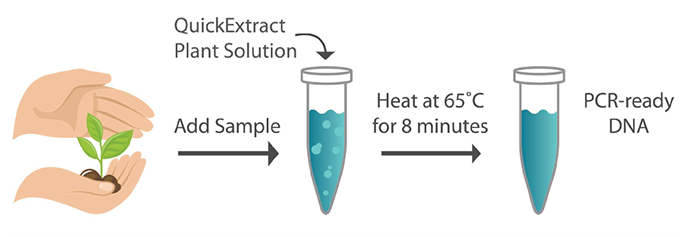 QuickExtract? Plant DNA Extraction Solution是一種快速、簡單且高性價比的試劑,用來制備用于PCR擴增的植物基因組DNA。DNA提取過程僅需要熱處理以裂解植物樣本,釋放DNA并降解抑制擴增的化合物。 熱處理后,樣品DNA即可用于PCR。